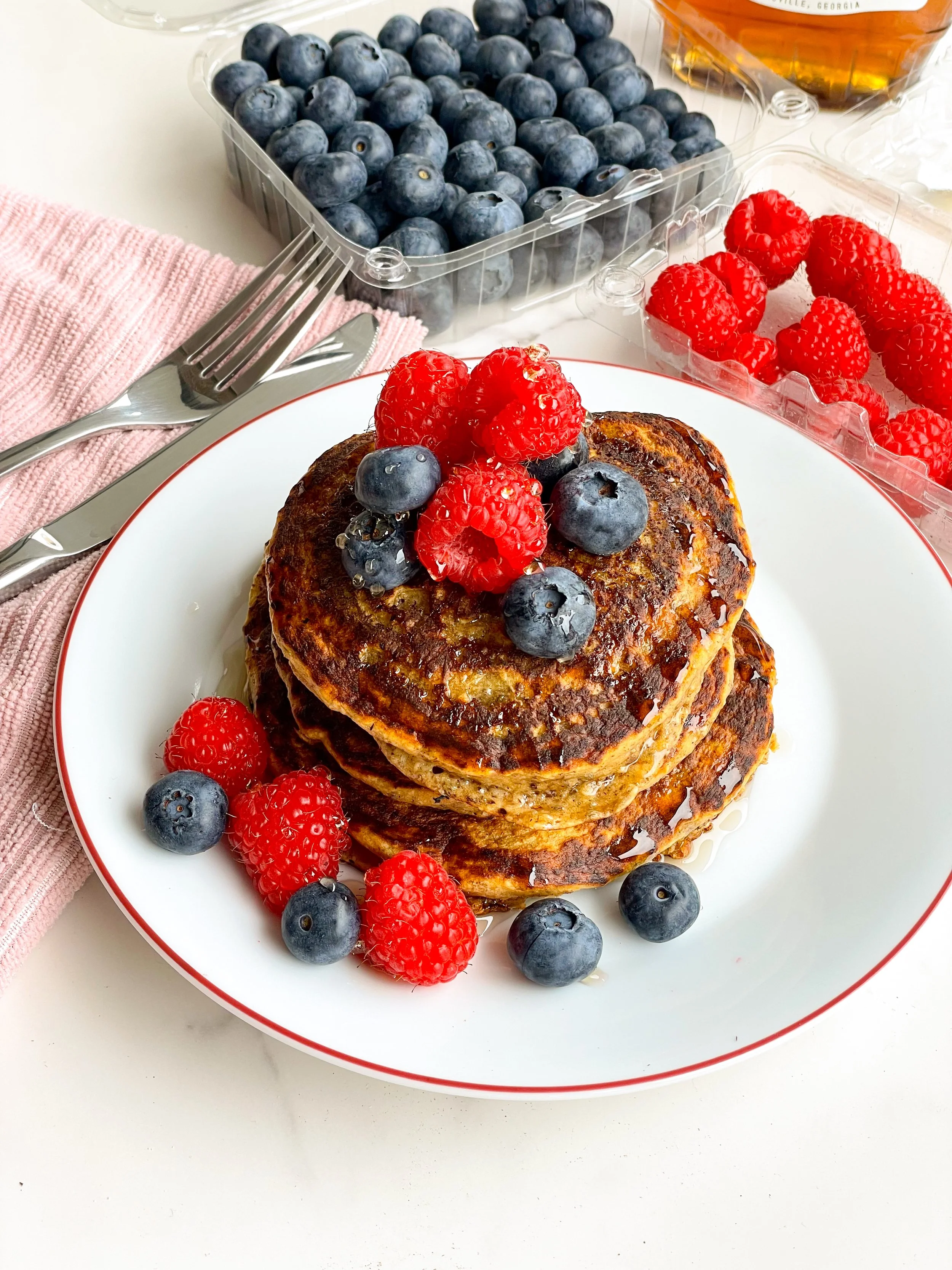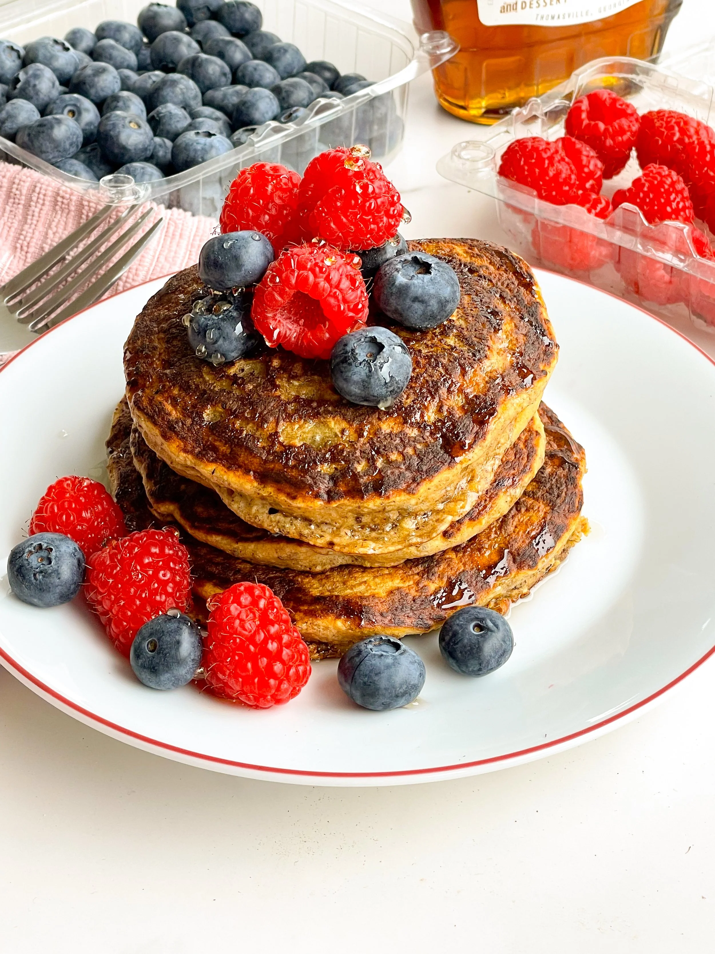 These pancakes are a testament that eating healthy does not have to be bland or boring!! I’ve been having these pancakes once a week for eight years now, and they NEVER get old. I literally go to bed dreaming of them the night before, and I guarantee you will too, once you make them :)